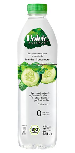 Eau minérale naturelle de Volvic (98,6%), jus de citron biologique à partir de concentré de jus de citron (1,1%), extrait de citron, extrait de menthe, extrait de concombre, extrait de basilic.